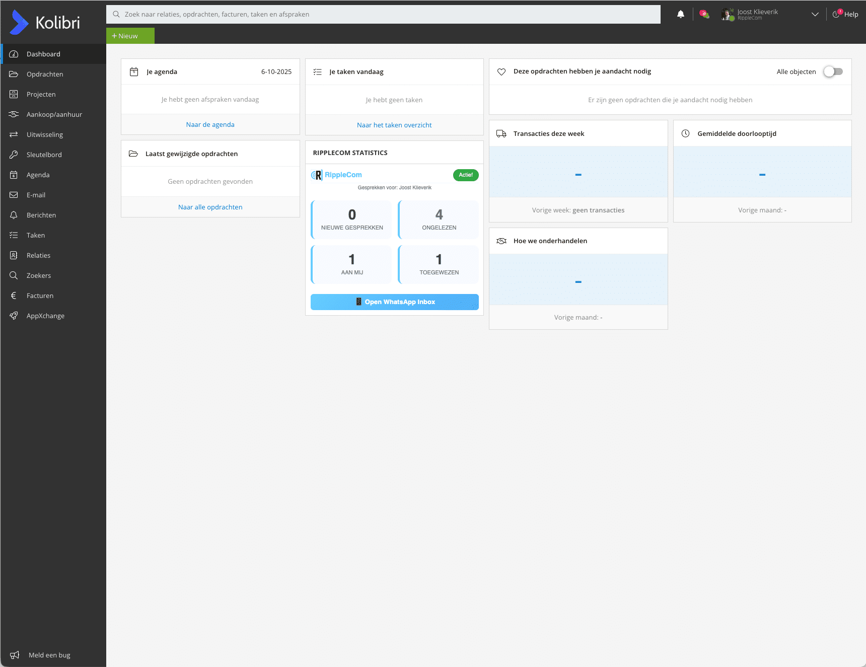 Binnen 24 uur is RippleCom volledig gekoppeld aan Kolibri. RippleCom verzorgt de complete setup: technische configuratie, WhatsApp verificatie en alle koppelingen. Alles wordt tot in de puntjes geregeld.